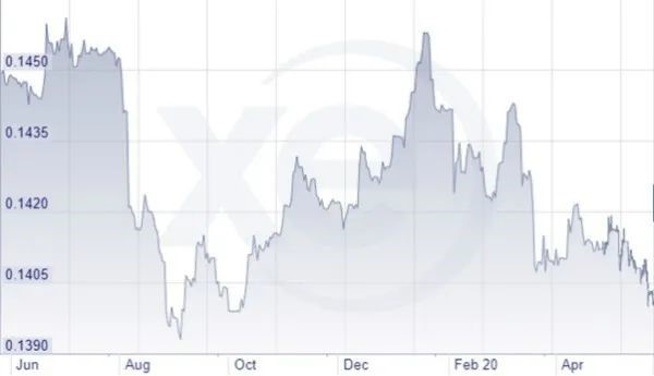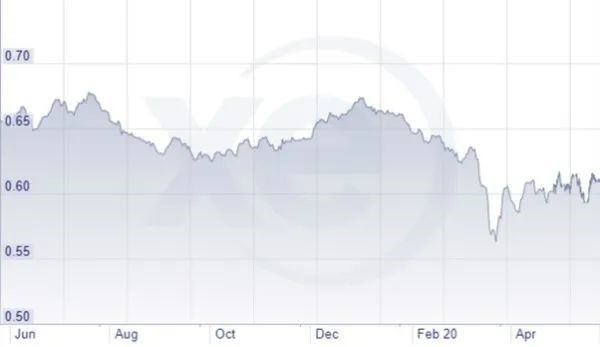 圖1 2019年6月(Jun. )至2020年(nián)4月(Apr. )期間,新西蘭元(yuán)兌美元(yuán)匯率走勢